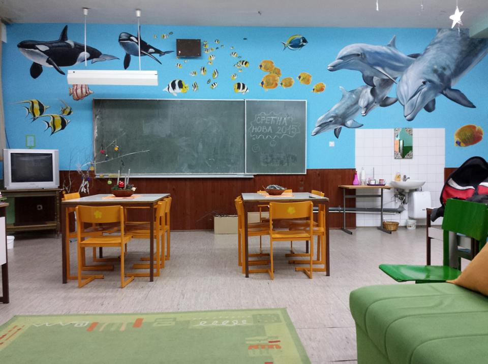 10834140 806040222752314 1224774833 n  Учионицу продуженог боравка краси нови мурал. Дело академског сликара, наставника и пријатеља Милоша Остојића.
