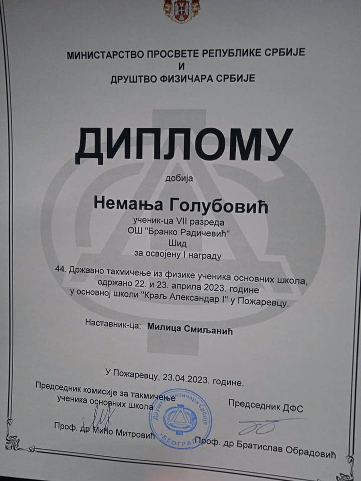 Захваљујемо се граду Пожаревцу, општини Шид, свим учитељима, наставницима, родитељима, директорици школе и свима који су допринели нашим успесима❣️