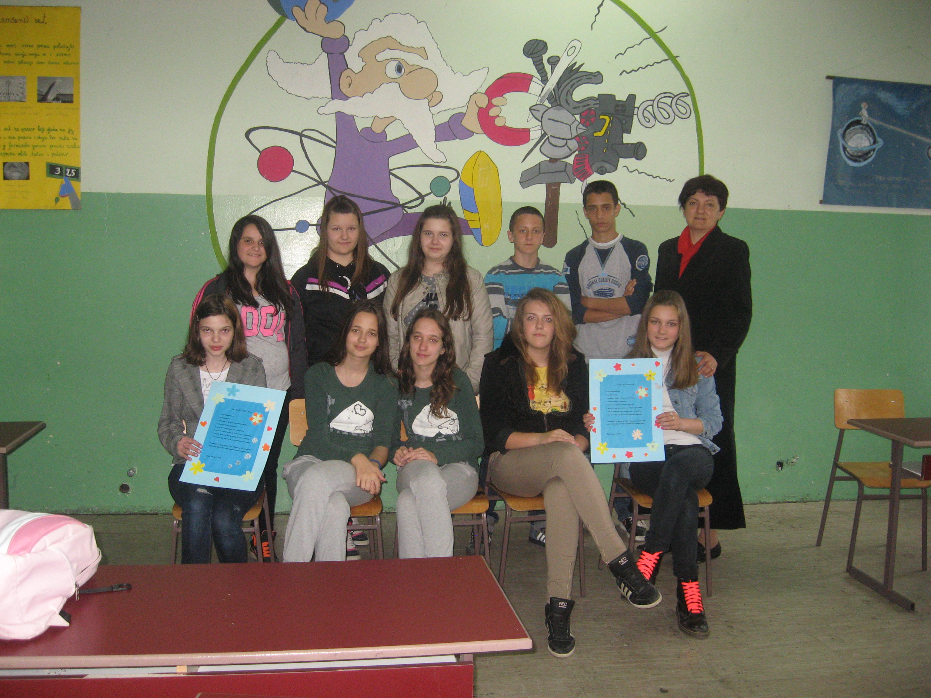 Ученици који похађају наставу Грађанског васпитања са својом наставницом  Лазић Биљаном организовали су се у  групу волонтера. Приликом једне посете Црвеном крсту упознали су се са активностима и  присустовали су акцији давања инфузије у кућним условима и помагању старим особама.  Приликом друге посете учествовали су у радионици психосоматске подршке  "Помоћ деци и омладини са инвалидитетом".  Новим другарима из  ОШ"Јован Јовановић Змај" помогли су у изради честитки и слика од папира. Поред Душице и Мајде, иначе запослених у Цевеном крсту, са нашим ученицима се дружила и Пестелек Душа из Змајеве школе. Из ових сусрета ученици-волонтери из наше школе су понели лепе утиске те су направили захвалнице које су уручили активисткињама Црвеног крста.