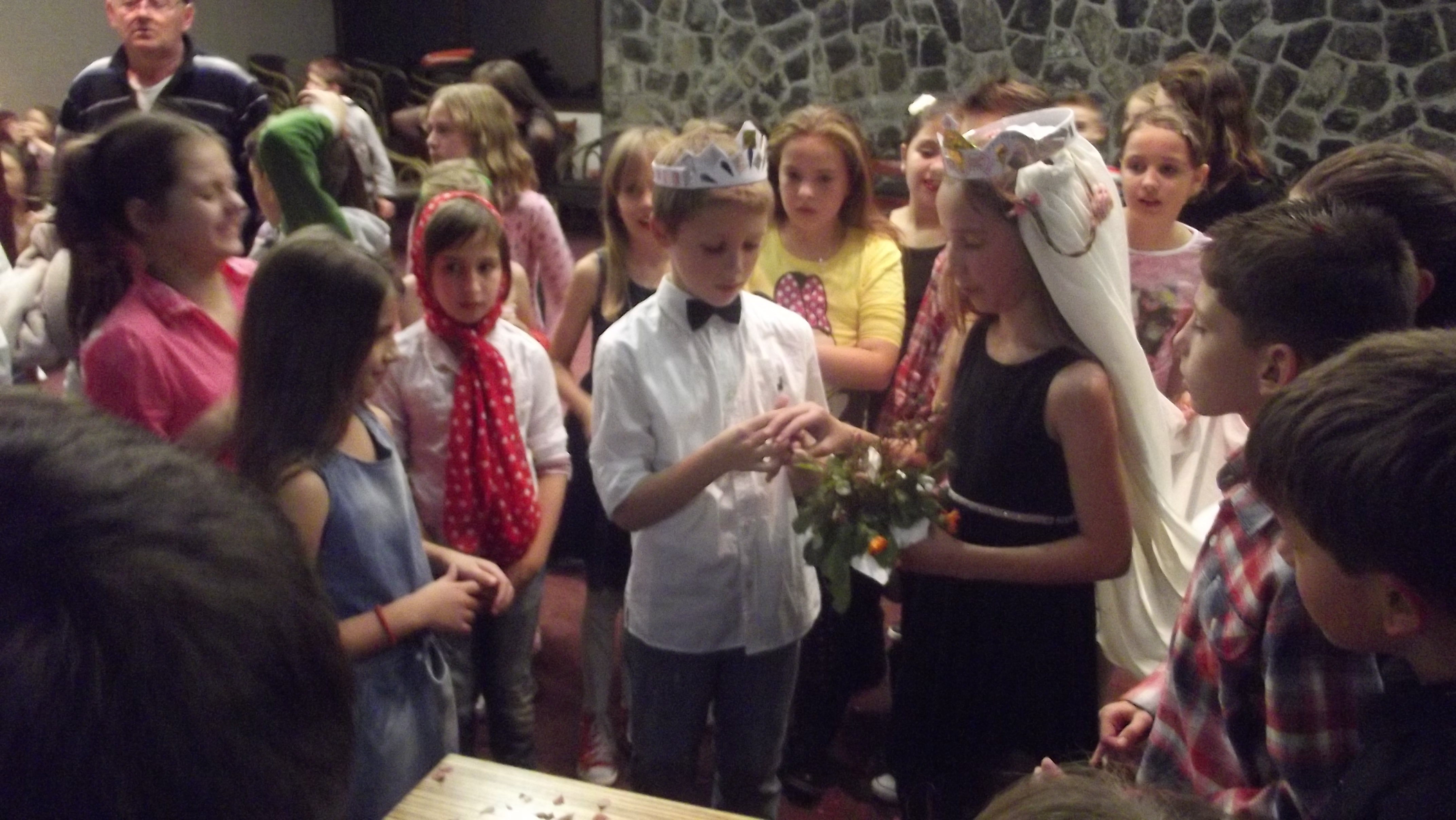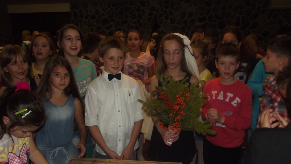 Најнеобичније вече у школи у природи је била "свадба". Деца су се потпуно уживила и одглумила овај догађај у свим детаљима. Окићена је  права млада али и лажна;  чекали смо да сватови дођу и купе младу од девера;  присуствовали смо и грађанском и црквеном венчању;  имали смо и матичара, и попа, али и попадију;  сликали смо потписе младенаца, кумова, размену прстена, пољубац,  бацање букета и плес младенаца. Како је прошло можете видети на сликама  доле